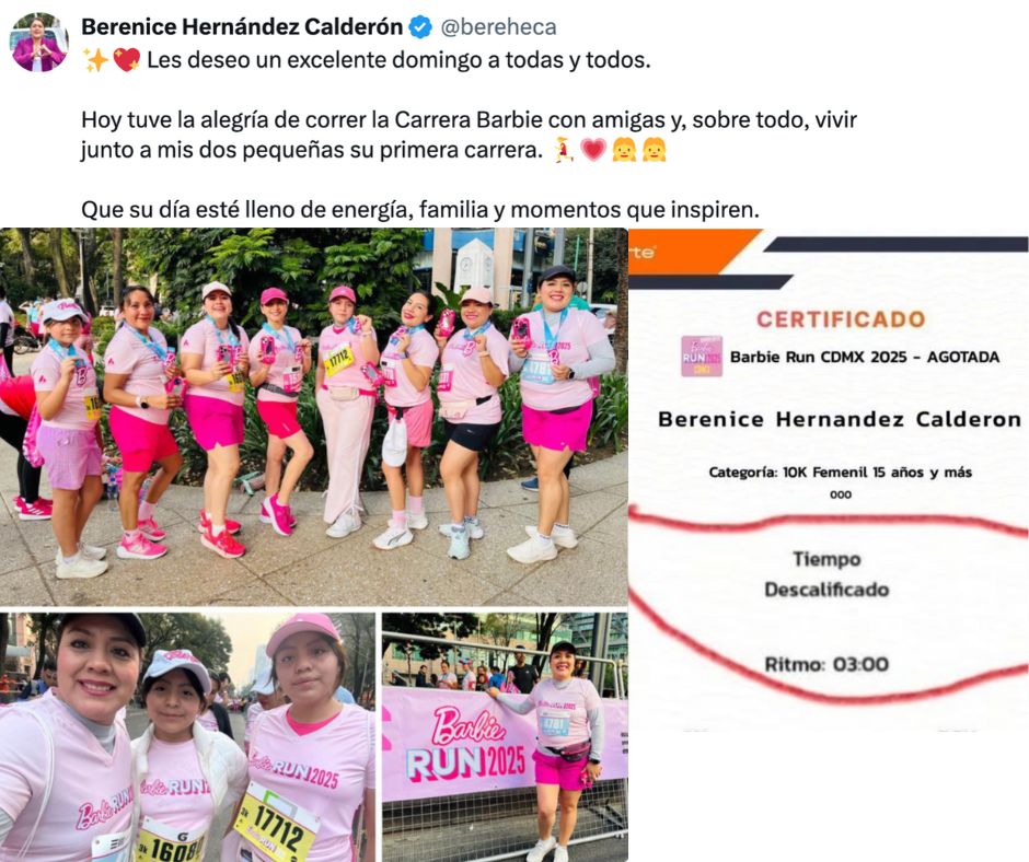 La alcaldesa de Tláhuac, Berenice Hernández Calderón, se convirtió en tema de conversación en redes sociales luego de ser descalificada de la carrera “Barbie Run 2025”, realizada el pasado domingo en la Ciudad de México. La funcionaria compartió en sus cuentas de X e Instagram que había participado en el evento deportivo junto a amigas y acompañada de sus dos hijas, pero los datos oficiales del certamen revelaron que no cumplió con los puntos obligatorios del recorrido.