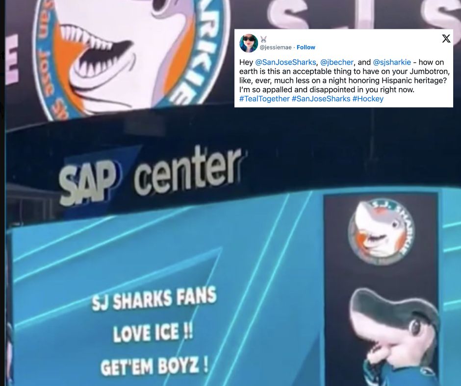 Durante la celebración de la Noche de la Herencia Hispana, el equipo de hockey San José Sharks, de la NHL, generó una fuerte controversia al proyectar un mensaje en su marcador electrónico que fue considerado ofensivo por parte del público y usuarios en redes sociales.