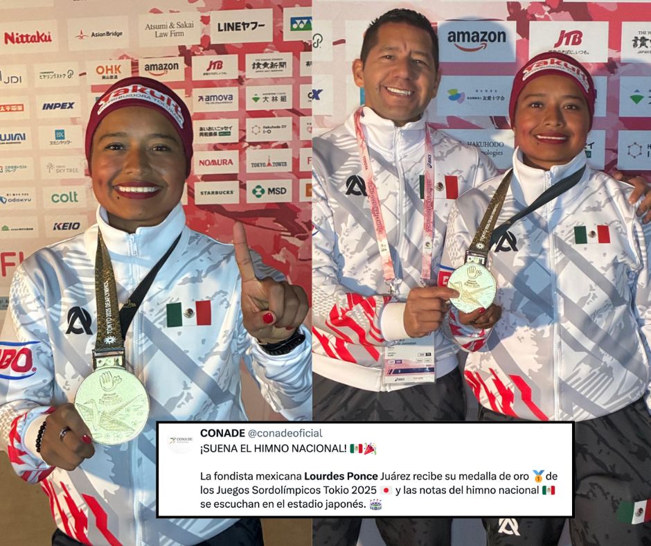 La atleta mexicana Lourdes Ponce se adjudicó la medalla de oro en los 10 mil metros planos de los Juegos Sordolímpicos Tokio 2025, consolidándose como una de las figuras más destacadas de la delegación tricolor. La competencia tuvo lugar en el Estadio Nacional de la capital japonesa, donde la fondista mexiquense alcanzó un tiempo de 36:17.07 minutos, marca que la colocó en lo más alto del podio.